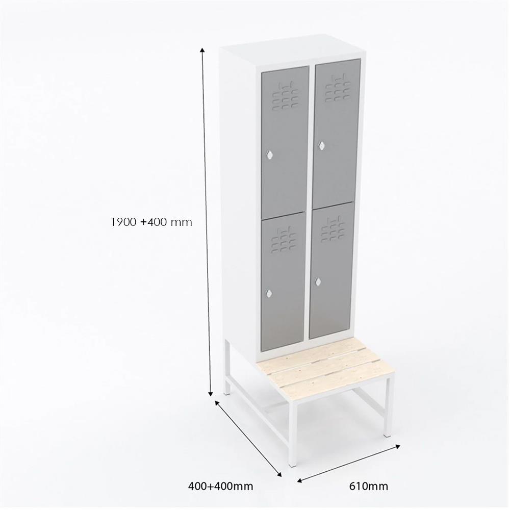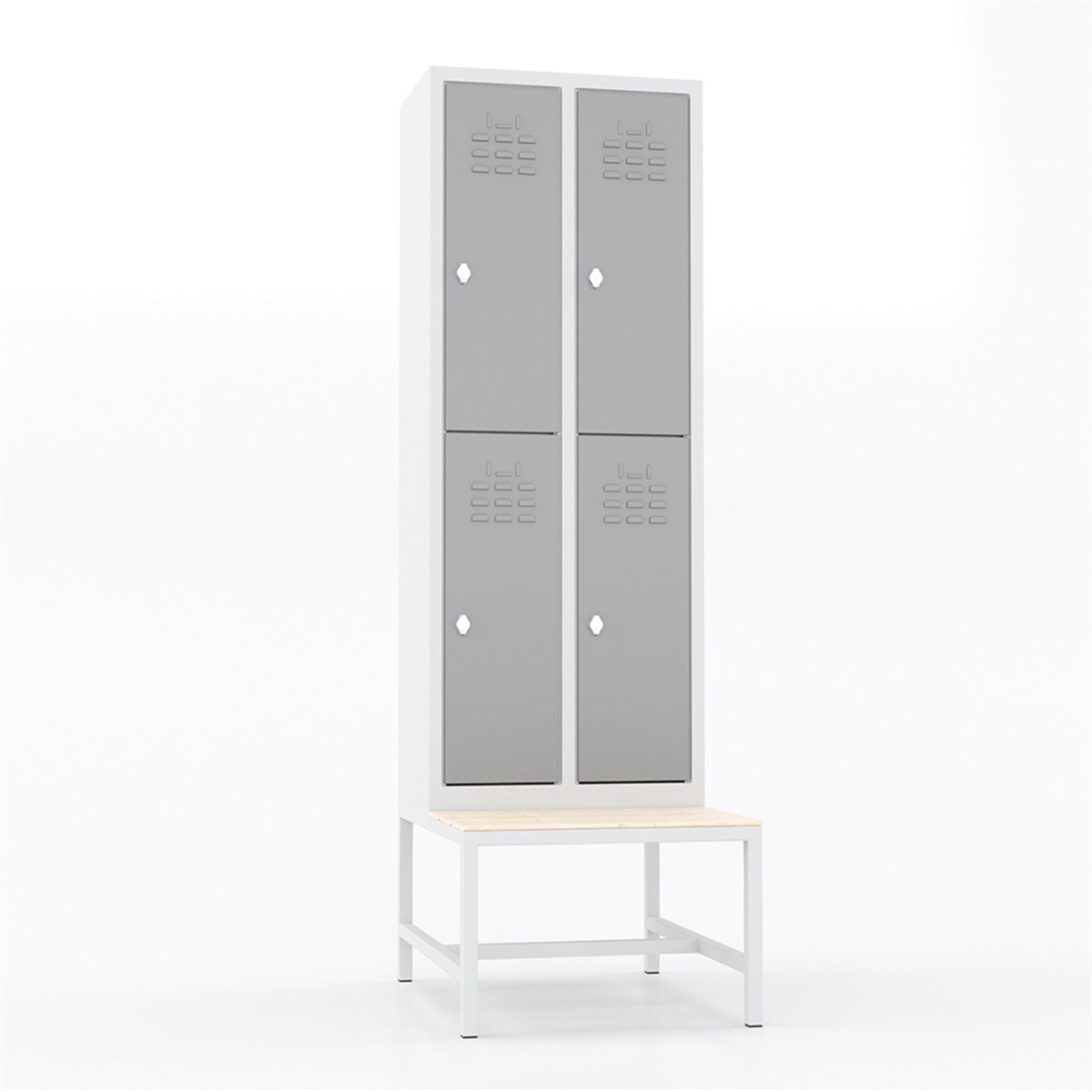 Usta Çelik Giyinme Dolabı Metal Oturma Banklı Dar Tip 4 Yarım Kapılı U-D044-Bnk