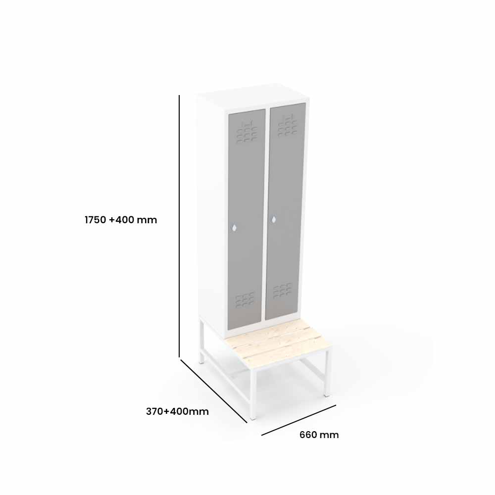 Usta Çelik Giyinme Dolabı Metal Oturma Banklı 2 Kapılı Dar Tip – U-E02-Bnk