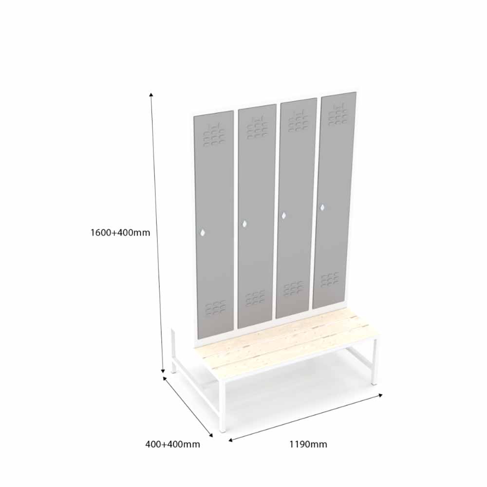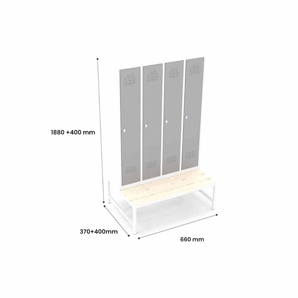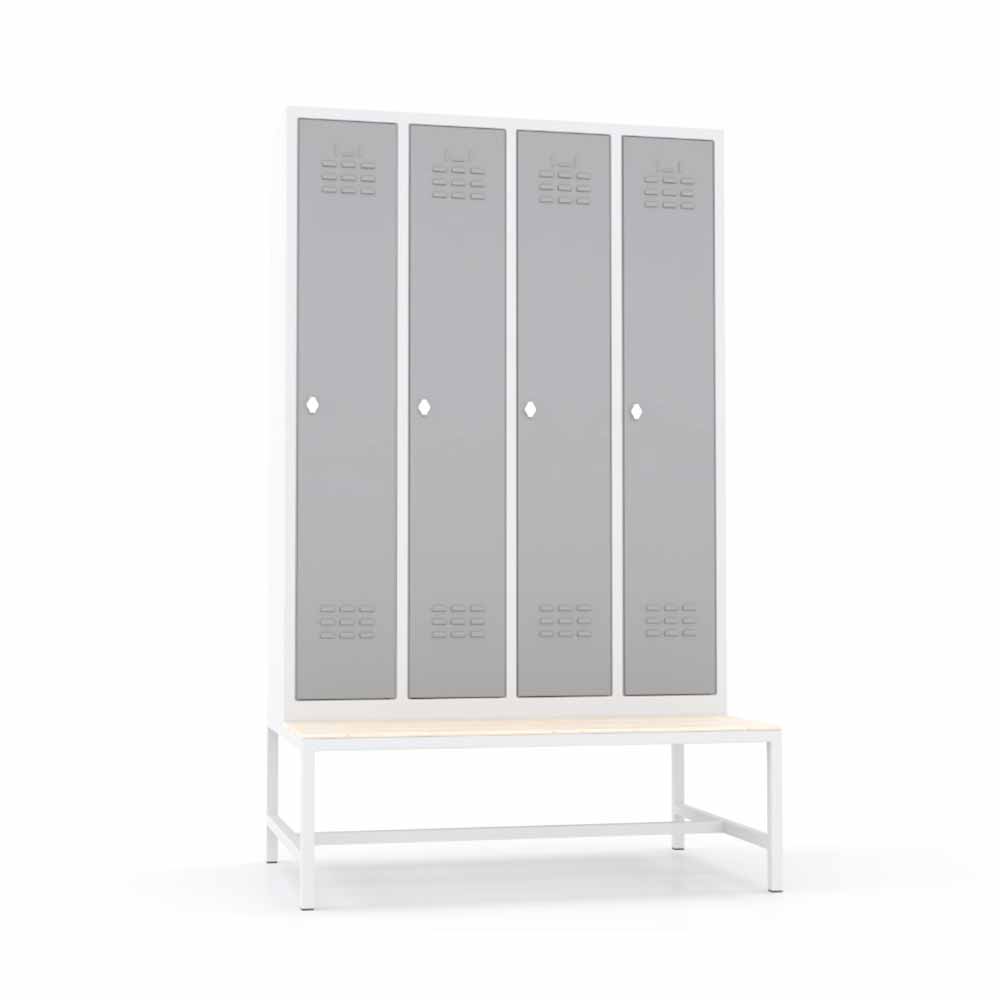 Usta Çelik Giyinme Dolabı Metal Oturma Banklı 4 Kapılı Dar Tip – U-E04-Bnk