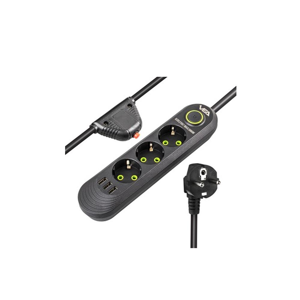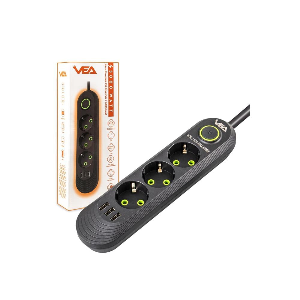 Vea Va-21557 3'Lü 1.5 Metre Kablolu 3 Usb'Li Siyah Akım Korumalı Priz