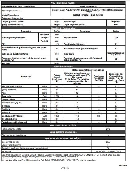 Vestel Retro NFK37201 Düş Mavisi 330 Lt No-Frost Buzdolabı
