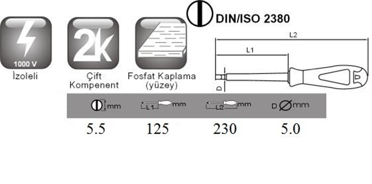 Vip-Tec 1000V İzoleli Düz Uçlu Tornavida 5.5X125Mm 8100/53