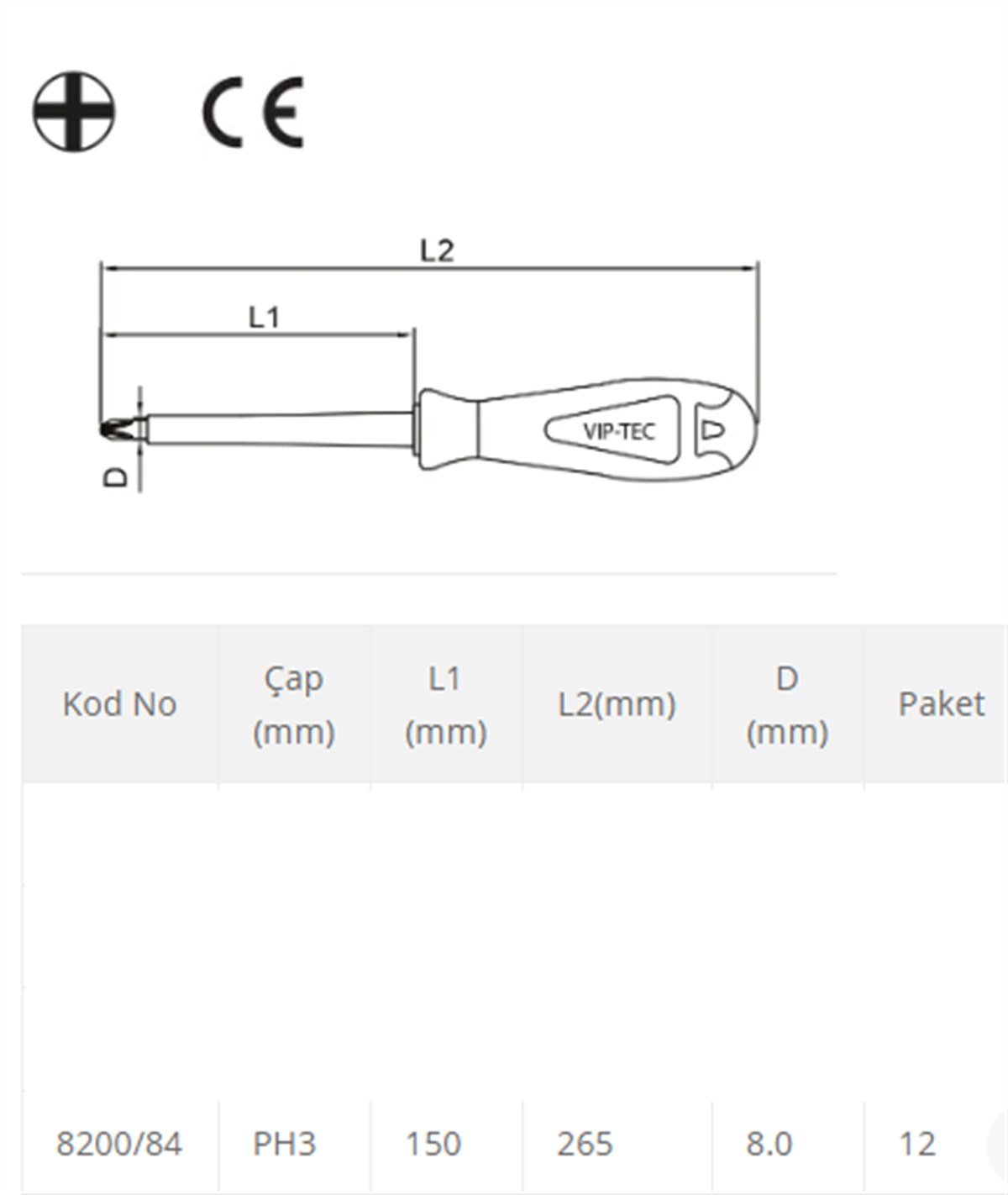 Vip-Tec 1000V İzoleli Yıldız Uçlu Tornavida Ph3X150 8200/84