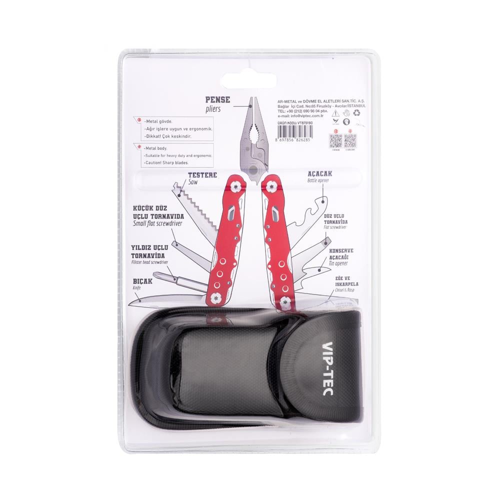Vip-Tec 9 Parça Multi Fonksiyonel Çakı Pense Seti VT875190, günlük kullanım ve outdoor aktiviteler için pratik bir çözüm sunar. Kompakt ve taşınabilir yapısı sayesinde çantada,